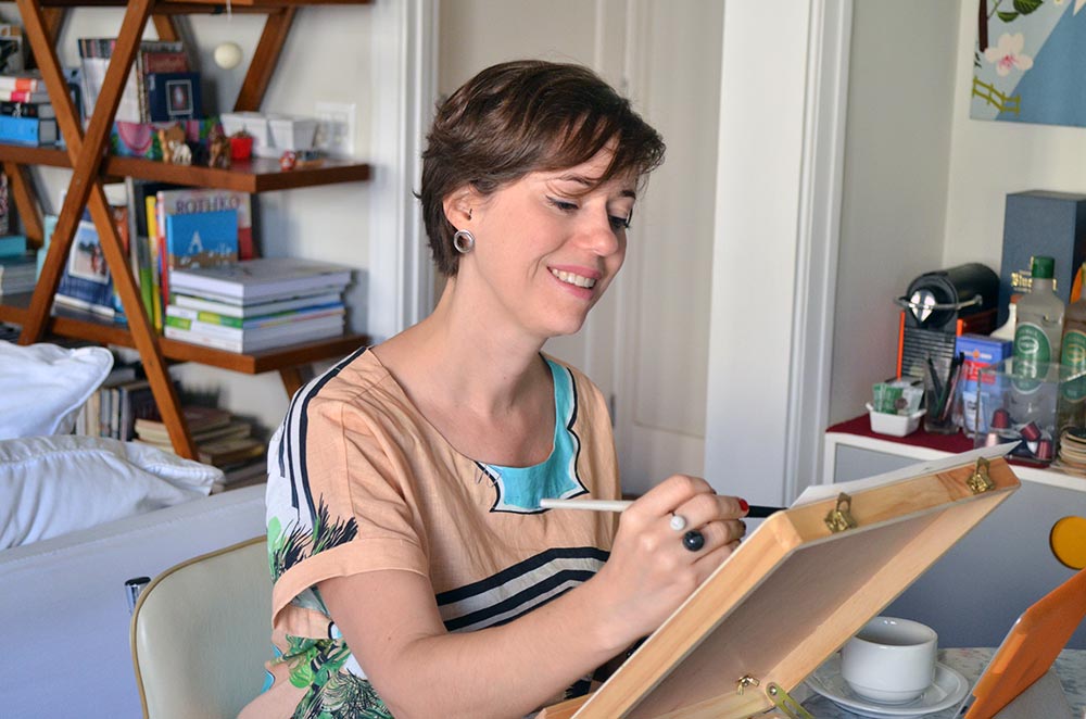 Em uma manhã meio nublada fui conhecer a casa com decoração de Pinterest de Diana Gondim. A artista, que tem formação em Design, aproveita a sala do seu lar para criar as aquarelas. Engana-se quem acha que a vida dela sempre foi segurando os pincéis. Antes de passar muito tempo do seu dia entre as tintas, Diana trabalhou em grandes empresas. Nesse período, ela se desligou um pouco da arte, mas decidiu retomar quando percebeu que seu destino, entre outras coisas, era pintando. Bati um papo bem legal, entre um clique e um gole em chá (trazido direto da China, conforme ela explicou)e pude conhecer mais do seu trabalho. Diana falou sobre a vida pessoal, mas seus olhos brilharam mesmo ao falar sobre suas aquarelas.